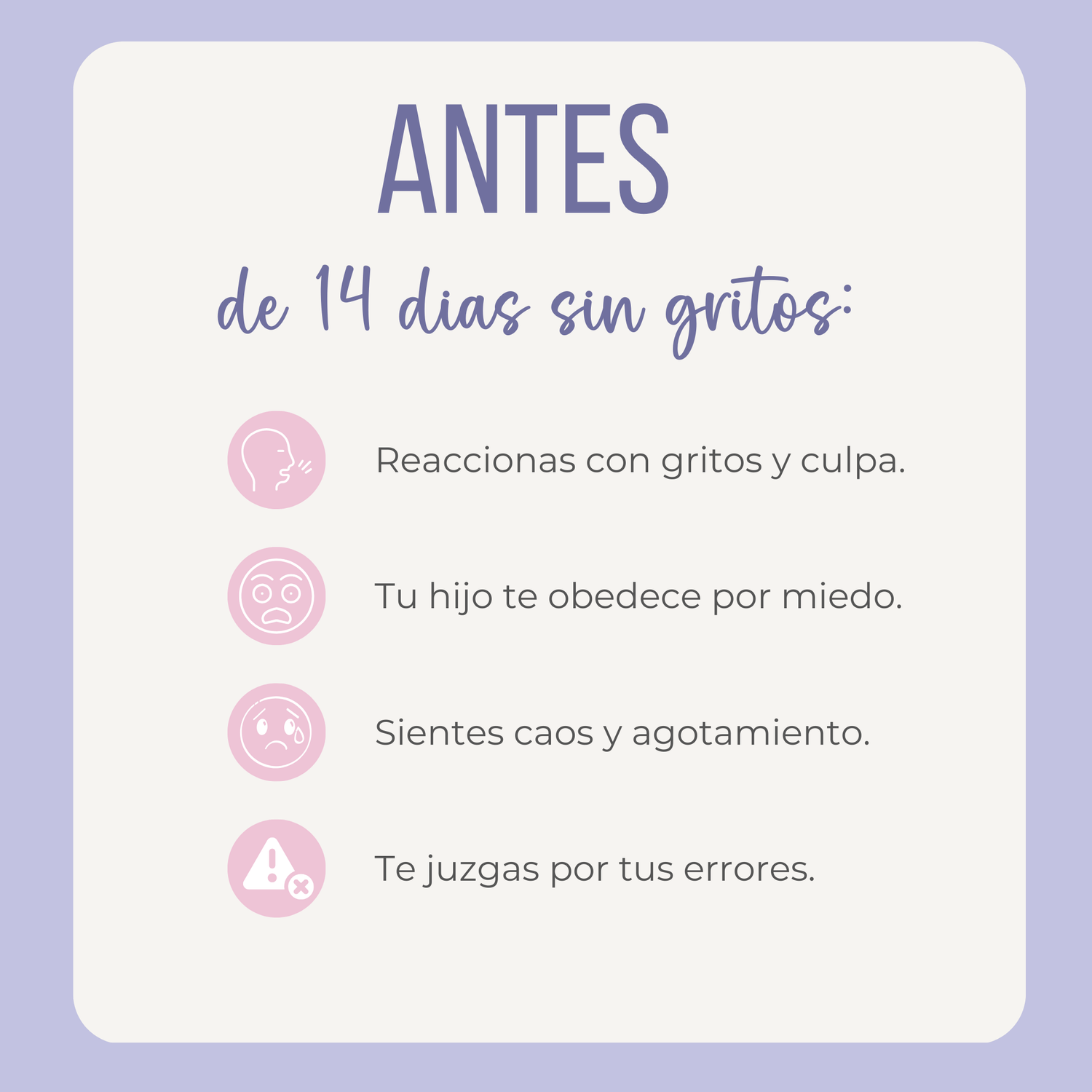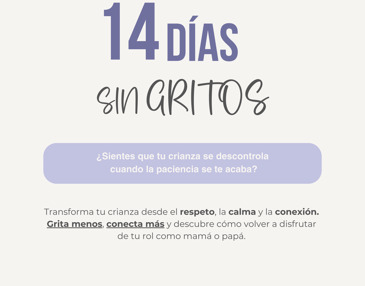 En 14 días, no solo dejarás de gritar tanto: vas a descubrir una nueva forma de educar, conectar y disfrutar a tus hijos.