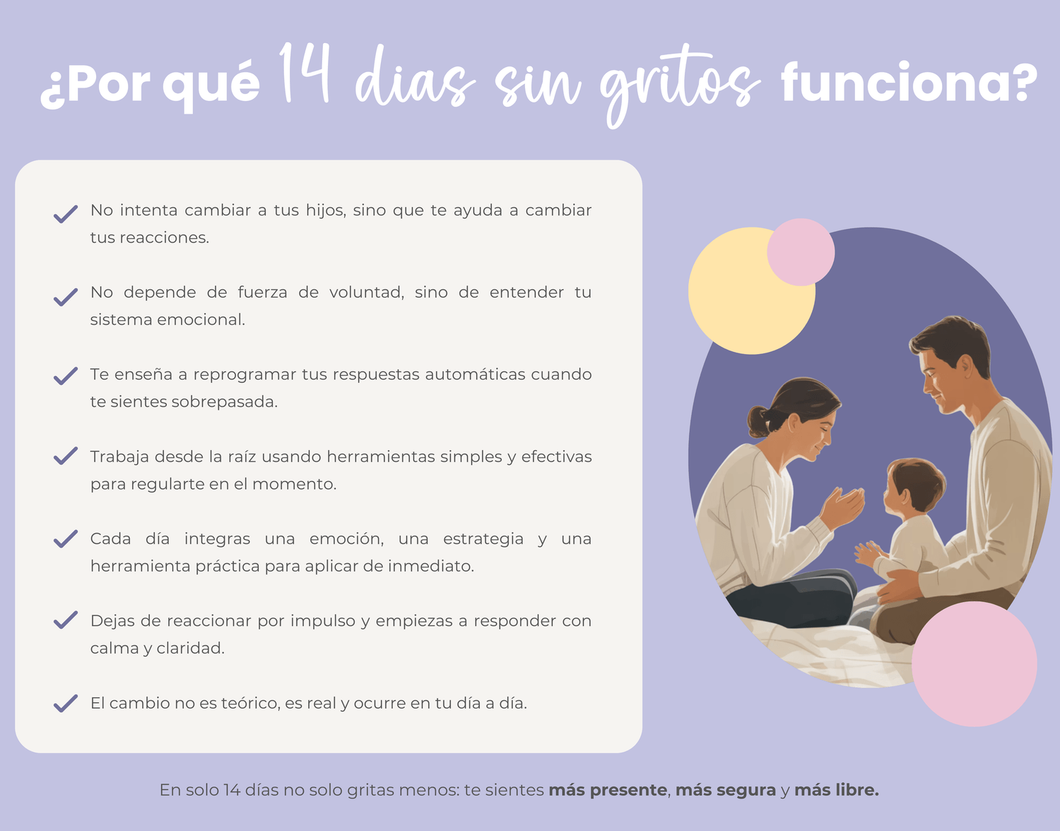 En solo 14 días, aprenderás a mantener la calma, comunicarte sin perder el control y crear un hogar más tranquilo y amoroso.