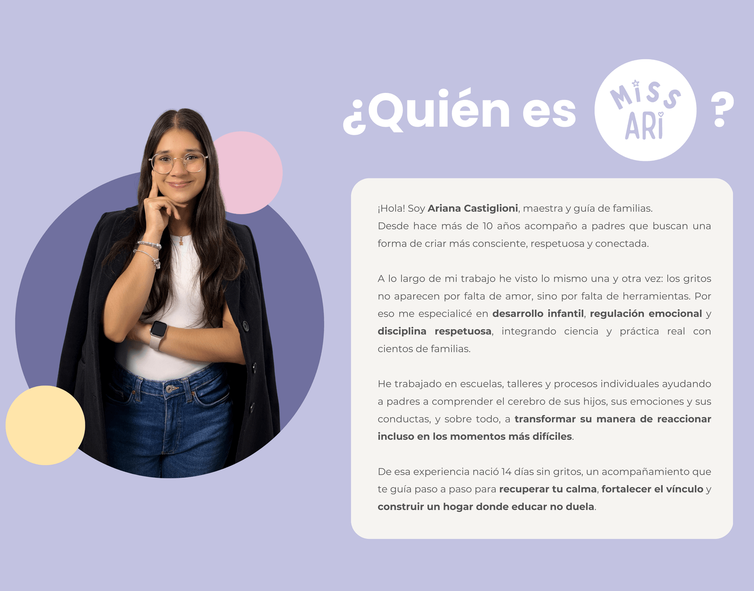 En solo 14 días aprenderás a entender tus reacciones, regular tus emociones y construir un hogar donde la calma sea posible, incluso en los días difíciles.
