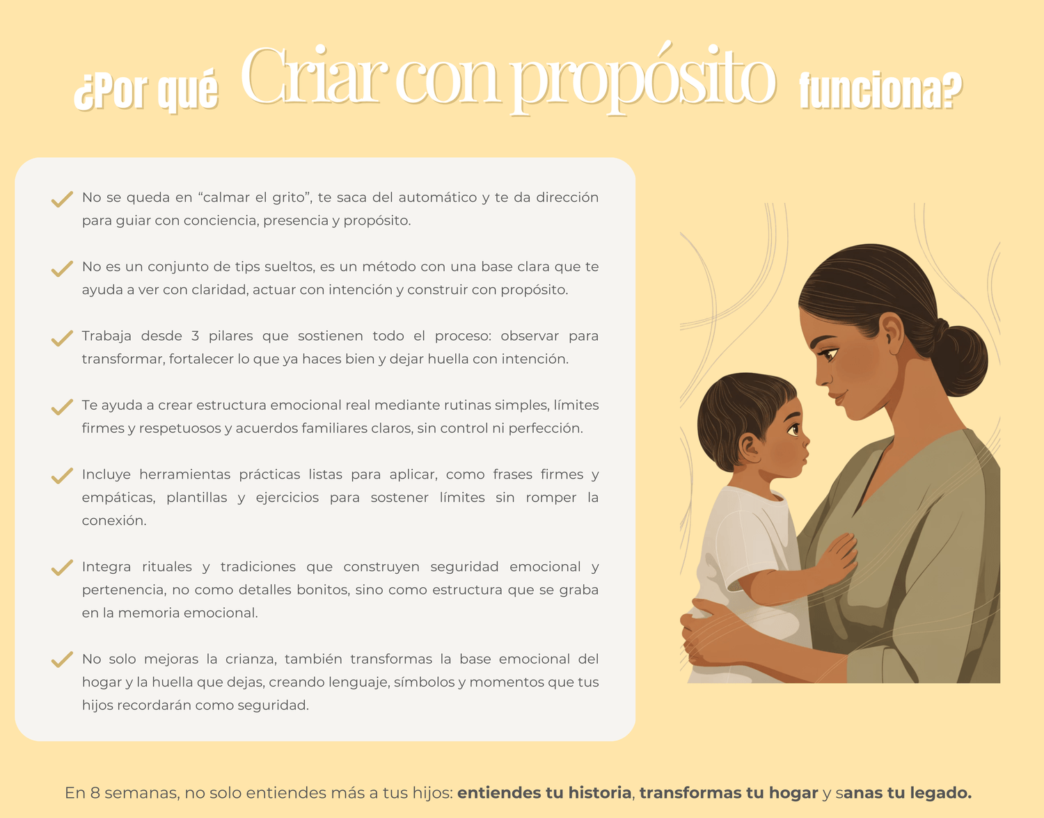 En 8 semanas, verás un antes y un después en tu familia y en ti.